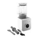 برای مخلوط کن اسمگ مدل BLC02 یک مجموعه از لوازم جانبی محصول را تکمیل کرده و استفاده از آن را آسان میکند: فشاردهنده، که برای تهیه مواد غذایی غلیظ مانند کره مغز میوه یا دسرهای سرد مفید است، اجازه میدهد تا مواد به منطقه مرکزی برش منتقل شود؛ اسپاتولا که بازیابی مواد در داخل ظرف را آسان میکند؛ و مسطلح که با دقت باقیماندههای غذا را از منطقه برش حذف میکند.